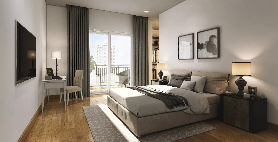 - Floors: Laminated wooden floor / Vitrified Tile / Marble